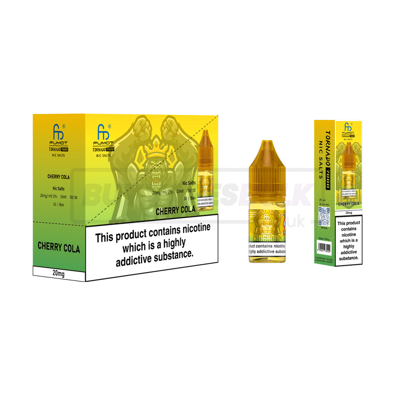 The classic taste of fizzy cola infused with juicy cherries makes this RandM Tornado 7000 Nic Salts Vape Juice E-Liquid a nostalgic and refreshing vape, delivering a perfect blend of sweetness and fizz.